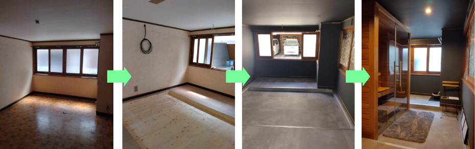 Loovsaunのショールームは、実際に当社でサウナの組立・リフォームをし、サウナ空間を創り上げました。